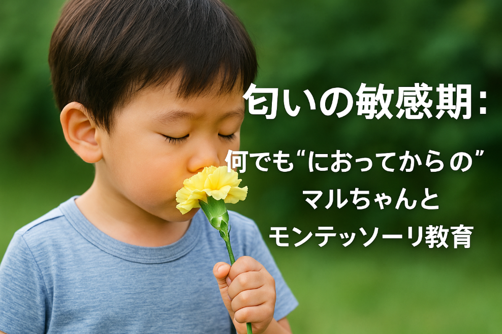 マルちゃんは3歳を迎えた頃から、何でもまずにおってから行動するようになりました。お菓子を食べる前も、虫を手に取ったときも、必ずクンクン。正直「そんなに匂わなくても…」と言いかける瞬間もありますが、これはモンテッソーリ教育でいう「匂い(嗅覚)の敏感期」に当たるようです。